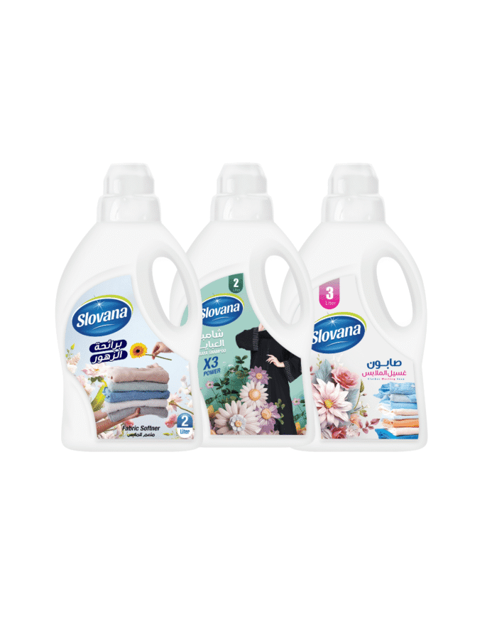 احصل على العناية الكاملة لملابسك مع كرتون الملابس النظيفة! يحتوي الكرتون على 6 عبوات متنوعة تشمل: 2 عبوة منعم ملابس 2 لتر، 2 عبوة شامبو عباية 2 لتر، و2 عبوة غسيل ملابس 2 لتر، لتمنح ملابسك تنظيفًا عميقًا ونعومة فائقة في كل غسلة.